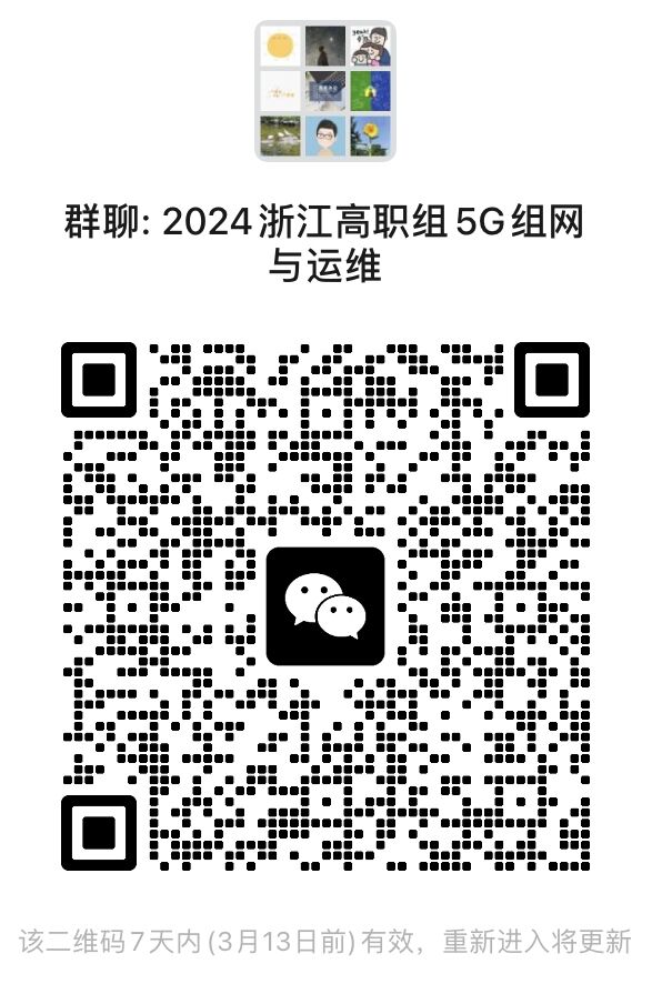 微信群:2024年浙江高职组5G组网与运维赛项预参赛队的领队或指导老师,原则上每所院校不超过2人。