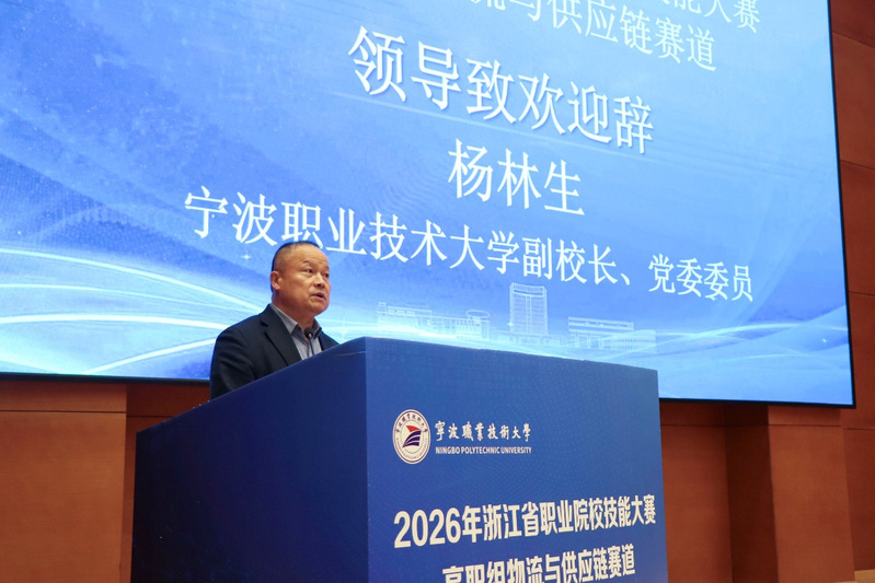杨林生副校长代表学校向到场领导、嘉宾与参赛师生表示欢迎和感谢,介绍了我校作为国家“双高”建设学校的办学实力,以及学校紧扣宁波物流与供应链支柱产业需求,在专业建设、实践教学、产教融合等方面的探索成果。他表示,大赛落户我校是对学校办学和专业建设的肯定,学校已周密部署赛事筹备各项工作,全力保障大赛开展。他寄语参赛选手以赛砺技、奋勇拼搏,在比拼中展现工匠精神,在交流中共同成长。