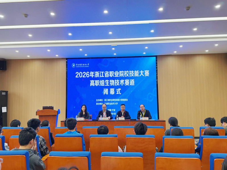 4月9日至11日,由浙江省职业院校技能大赛组委会主办、宁波职业技术大学承办的2026年浙江省职业院校技能大赛(高职组)生物技术赛道在宁波职业技术大学成功举办。来自全省7所高职院校的16支参赛队伍齐聚甬江之畔,同台切磋技艺,共展职教风采。